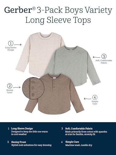 This delightful trio of long-sleeve shirts is just what your baby boy needs for a cozy and stylish wardrobe. Crafted from soft cotton with a hint of stretch, these shirts provide a gentle feel against the skin and allow for comfortable movement. The ribbed trim not only adds a cute touch but also ensures durability, maintaining the shirt’s shape wash after wash. Perfect for layering or pairing with jeans, joggers, or leggings, these shirts offer versatile outfit options. One of the shirts even features a charming Henley top with buttons, making it a standout piece in this 3-pack. Keep your little one fashionably comfortable with these irresistibly cute long-sleeve shirts.