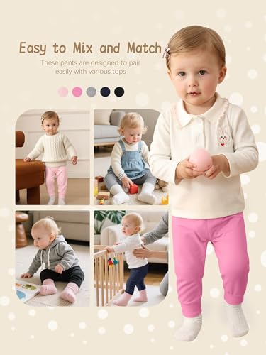 5-Pack Versatile Unisex Baby Pants, 0-24M, Multicolor Cotton Leggings