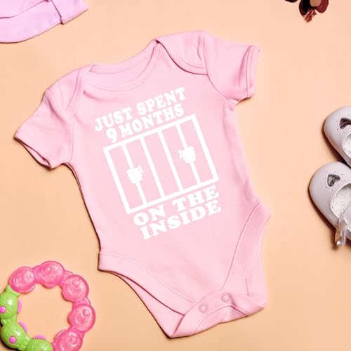 Warm hearts and spread smiles with this playful “9 Months On The Inside” baby bodysuit, a charming addition to your little one’s wardrobe. This lovingly crafted outfit captures the joy and anticipation of the journey from the womb to the world in a light-hearted way. The front of the suit showcases a delightful, cheeky baby illustration alongside the humorous phrase, adding a touch of fun to your baby’s attire.