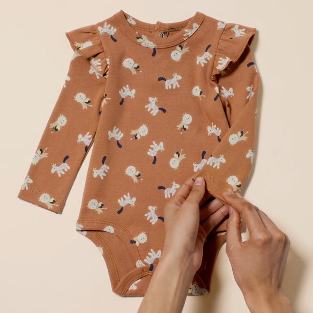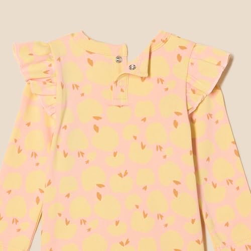 Dress your little one in these charming long-sleeved ruffle bodysuits, perfect for any season. Made from 100% medium-weight cotton rib knit, these bodysuits offer natural breathability and stretch, ensuring comfort and easy movement. The playful ruffle detail at the shoulder adds a sweet touch to these bodysuits, which can be worn on their own or paired with other cute pieces. For added comfort, the neckline is tag-free to avoid any itchiness. Plus, diaper changes are a breeze with the convenient snap buttons at the base. Get this pack of two to have an adorable and practical addition to your baby girl’s wardrobe.