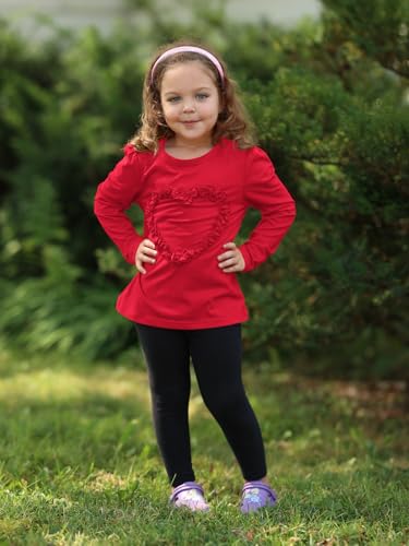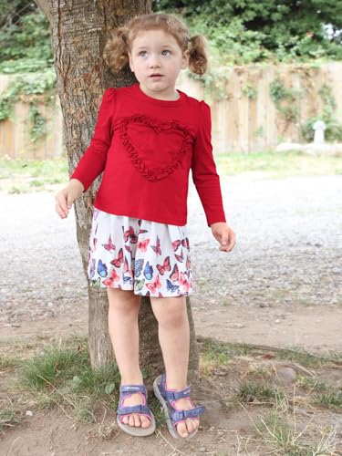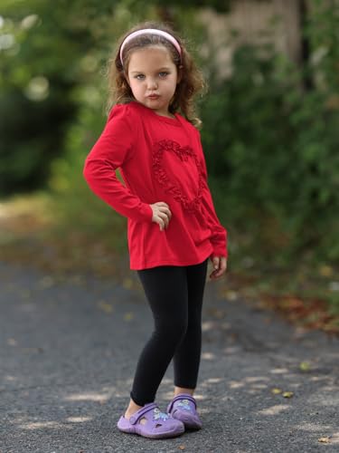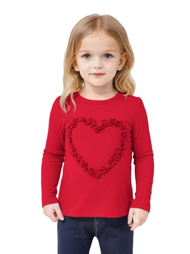 Introducing our gorgeous ruffled heart t-shirt for toddler girls, designed to make your little princess feel special and comfortable all day long. Created from soft, breathable, and skin-friendly knit fabric, this top ensures absolute comfort, making it perfect for those with sensitive skin. It features a charming round neckline, puff sleeves, and a unique gathered heart design on the chest. The sweet heart detail coupled with ruffled edges creates an irresistible, princess-like style. Versatile and stylish, this t-shirt effortlessly pairs with leggings, skirts, jeans, or dresses. Whether it’s a regular day at school, playdates, parties, holidays, or photo shoots, this t-shirt is a perfect fit. It also makes a thoughtful gift for little girls that they’ll absolutely love. To maintain its shape and color, it’s recommended to wash gently in cold water and tumble dry low or air dry. As for sizing, if your little girl is taller or stronger, we suggest opting for a bigger size.