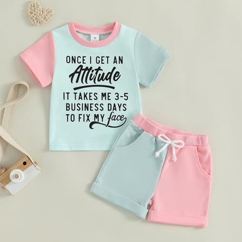 Our toddler girl summer outfit set is thoughtfully designed for your little princess. Created with high-quality cotton blend fabric, the set is not only soft and comfortable but also lightweight and easy to wash, ensuring no harm to your child’s delicate skin. The set includes a short sleeve, crewneck t-shirt adorned with a playful letter print and matching contrast color shorts featuring an elastic waistband for added comfort. This delightful set showcases a color block fashion design that guarantees your sweetheart will look charming and attract many compliments. Perfect for everyday wear, outdoor activities, family gatherings, photo sessions, and birthday celebrations, this outfit will become a favorite. The set is available in multiple sizes, catering to little girls aged 0-4 years. Each package includes one short sleeve top and one pair of drawstring shorts. This outfit, suitable for both spring and summer, makes an ideal gift for occasions like Christmas, Easter, Thanksgiving, Halloween, New Year, birthdays, and more. Your little one will love the comfort and style of this delightful outfit set.