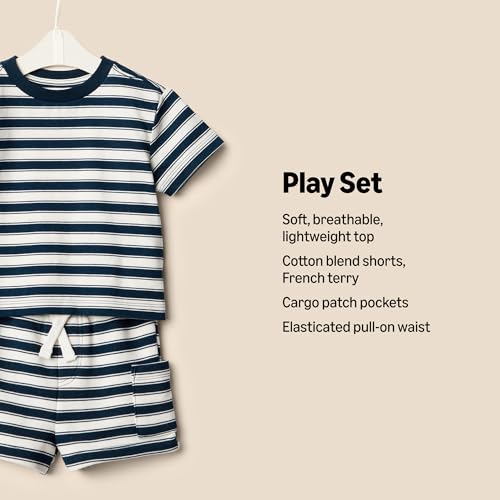 Dress your little one in this charming and comfortable t-shirt and short set, inspired by the creative styles of renowned children’s designer Sofia Grainge. The lightweight, ultra-soft double-knit fabric of the t-shirt offers natural stretch and breathability, ensuring your child’s comfort throughout the day. The shorts, crafted from a soft, stretchy, and breathable cotton-polyester blend loop back French terry fabric, sit comfortably at the waist and provide a regular fit through the hip and thigh. The t-shirt features a slight drop shoulder for a relaxed, comfortable fit, while the shorts boast cargo patch pockets and an elasticated pull-on waist with a stylish faux twill drawcord. The perfect ensemble for playtime, this set is as functional as it is fashionable.