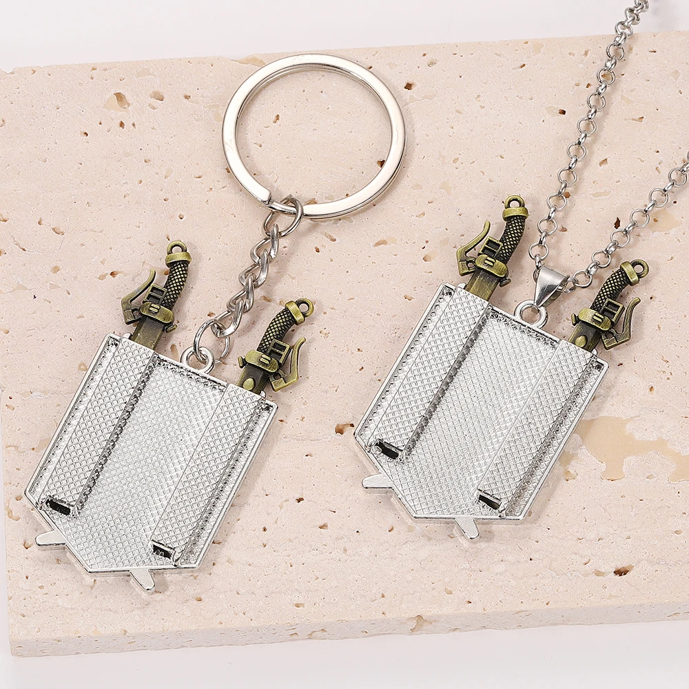 Name:Anime Attack On Titan Keychain Eren Wings of Liberty Freedom Badge Double Knife Key Chain Fashion Jewelry Keyring Dropshipping