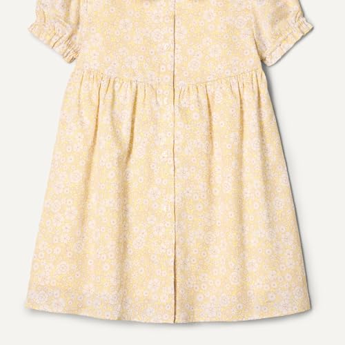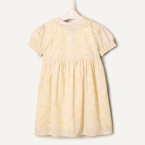 This delightful dress is the result of a creative collaboration, offering inspired styles perfect for your little ones. Crafted from 100% cotton, the fabric boasts a luxurious sheen and a soft touch, ensuring comfort throughout the day. The dress features a charming Peter Pan collar, a feminine ruffle trim, and a practical button closure. Its fit and flare design, fitted through the chest and waist with a full skirt, adds a playful touch to this enchanting wardrobe staple. This dress elegantly combines comfort, style, and charm, making it an ideal choice for any occasion.