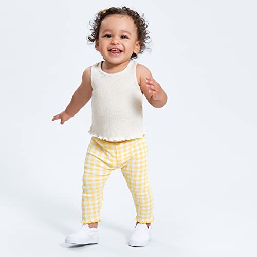 These delightful racerback tank tops are a must-have for your little girl’s wardrobe. The pack includes three uniquely colored tops – a subtle gray, a sweet pink, and a white adorned with a delicate floral print. Perfect for play dates, daycare, preschool or simply lounging around at home, these tops offer comfort and style. Their casual racerback design is enhanced with a cute lettuce edge trim, adding a touch of charm to each piece. Ideal for mixing and matching with knit shorts, bike shorts or her favorite accessories, these tank tops make dressing up fun and effortless.
