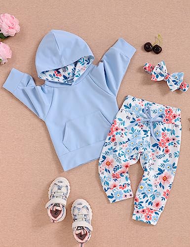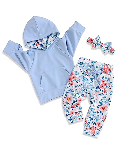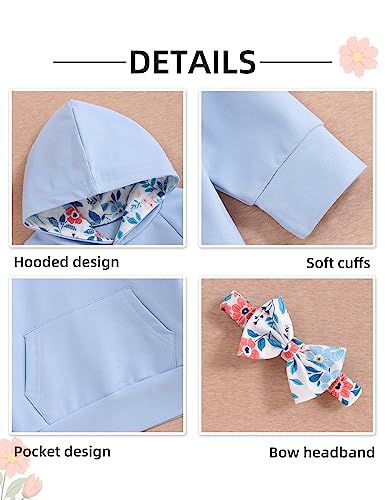 Dress your little one in our delightful three-piece hoodie set, designed especially for baby girls. Crafted from a soft, comfortable cotton blend, this outfit is skin-friendly, breathable, and imbued with elasticity for her comfort and mobility. The floral-patterned hoodie features a practical kangaroo pocket, and comes in a variety of colors and prints. The set includes elastic waistband pants and a matching headband, creating a complete, adorable outfit. Ideal for everyday wear, parties, photoshoots, or birthdays, this set also makes a thoughtful baby shower gift. Suitable for baby girls aged 0-24 months, the package includes a top, a pair of pants, and a headband. Watch your baby girl blossom in this cute and comfortable outfit set.