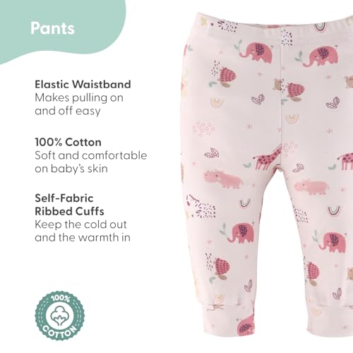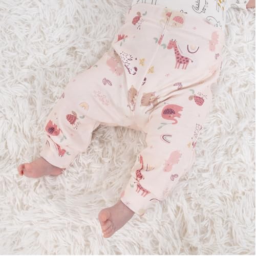 Discover an enchanting blend of style and comfort with our Safari Adventure 5-Pack Baby Girl Pants Set. These pants are adorned with delightful safari animals and rainbows in soothing shades of pink and grey, providing endless mix-and-match possibilities. Crafted from 100% cotton, they ensure softness and breathability for your little one’s all-day comfort. The elastic waistband offers an easy fit, while the self-fabric cuffs keep the pants securely in place during all activities. Built to endure the daily escapades of your growing baby, these machine-washable pants retain their vibrant colors even after numerous washes. With style, practicality, and comfort rolled into one, this 5-piece set makes the perfect thoughtful gift for baby showers and birthdays.