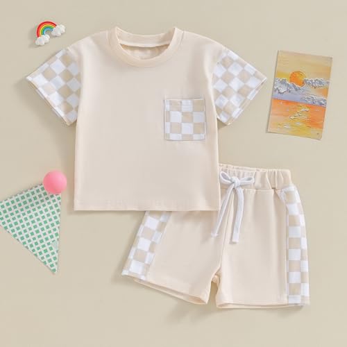 This delightful summer outfit set for toddler boys is designed with both comfort and style in mind. Made from a blend of cotton and spandex, the outfit is soft, breathable, and gentle against your little one’s skin. The short-sleeved, round-neck top features an eye-catching striped print, patchwork design, and a charming chest pocket. Complementing the top is a pair of shorts with an elastic waistband and a tie front, offering a perfect fit while ensuring easy dressing and undressing. Not just for daily wear, this versatile outfit set is also perfect for park visits, vacations, photo shoots, and special occasions. It would make a wonderful gift for birthdays, holidays, or any day in between. Dress your little one in this chic outfit set, and he’s sure to look adorable all day long.