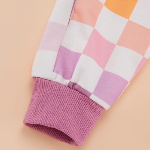 Dress your little one in adorable style with this delightful toddler girl’s Autumn outfit set. Made from a cozy blend of cotton and polyester, this set offers softness, breathability, and resilience, ensuring your child’s comfort throughout the day. The outfit features a trendy color-blocking design and checkerboard pattern, adding a dash of fashion-forward charm to your baby girl’s wardrobe. It’s a perfect choice for everyday wear, birthday parties, family gatherings, photo sessions, or as a coming home outfit. The set is available in sizes for 6-12 months, 12-18 months, 18-24 months, 2-3 years, and 3-4 years old toddlers and infants. Each package includes a long sleeve sweatshirt and matching pants, creating a coordinated, cute look for your baby girl.