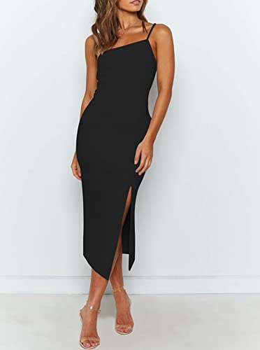 This high-quality Midi Bodycon Dress is the epitome of style and comfort. Crafted from soft, breathable polyester, this dress feels as good as it looks. Its skin-touch fabric is lightweight and features an inner lining for a non-see-through finish. Show off your figure and your fashion sense with an asymmetrical neckline and an adjustable spaghetti strap design that elegantly frames your collarbones. The high-waisted cut and side slit add a touch of allure, revealing just enough to keep things interesting. Perfect for cocktail parties, formal events, date nights, or any occasion where you want to look your best. It’s the ultimate versatile piece – pair it with high heels and your favorite fashion accessories for a polished look. In colder seasons, just add a jacket or cardigan. This dress is easy to care for – it can be machine washed in a laundry bag or gently hand washed in cold water. If it arrives a bit wrinkled, no worries – a quick pass with a garment steamer will have it looking perfect in no time. An elegant and versatile addition to any wardrobe, this dress also makes a thoughtful gift for loved ones.