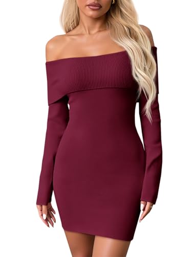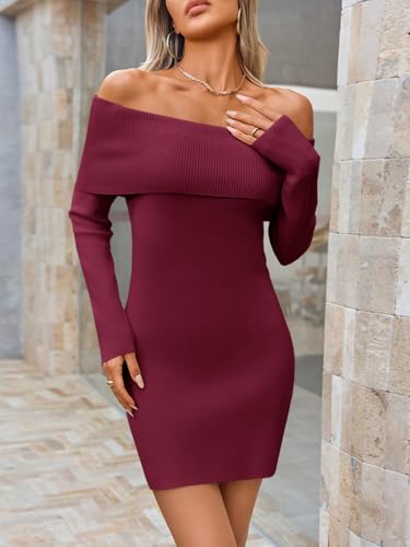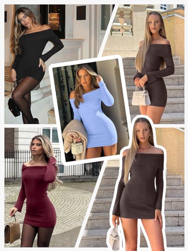 Step out in style this fall with this alluring off-the-shoulder mini dress. Crafted from a soft and stretchy ribbed knit fabric, this dress guarantees comfort while hugging your figure in all the right places. Its long sleeves provide warmth, making it the perfect ensemble for the cooler season. The bodycon design beautifully accentuates your contours, and the mini length adds a trendy touch, making it suitable for various occasions. Wear it casually with ankle boots or sneakers or elevate the look with heels and statement jewelry for an evening out. For extra warmth and style in cooler weather, layer it with your favorite jacket or cardigan. This mini dress is machine washable for easy care. Check back frequently for updates on new color options! Add this versatile piece to your wardrobe today!