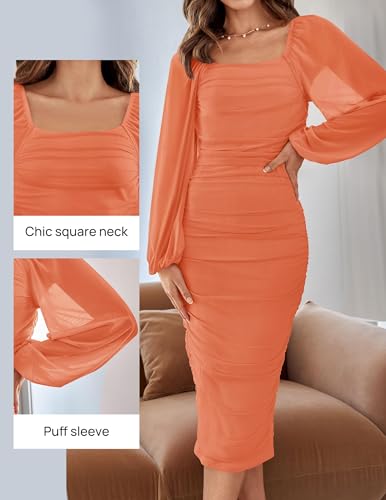 Make a statement at your next special event with this elegant bodycon midi dress. Its ruched waist and square backless neckline enhance your natural curves, while the long puff sleeves with elastic cuffs add a touch of romance. Crafted from soft, stretchy fabric, this dress is not only stylish but also incredibly comfortable. The fully lined design ensures a smooth silhouette and prevents any see-through worries. Pair this versatile piece with your favorite high heels and drop earrings for a polished, head-turning look. Perfect for cocktail parties, proms, weddings, date nights, holidays, and more. Keep this dress in top condition with easy care – machine wash or hand wash in cold water, and hang or line dry.