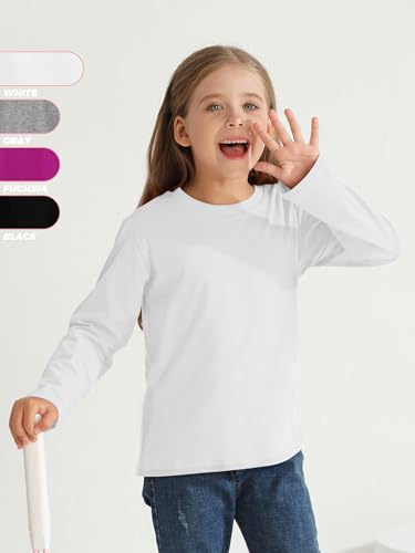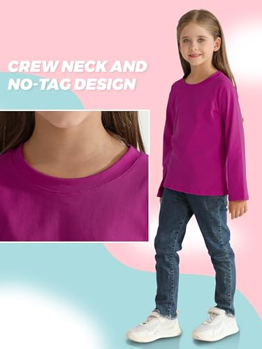 Treat your little one to our superior quality, long-sleeve shirts for toddler girls. Made from premium cotton fabric, these shirts are exceptionally soft, breathable, and gentle on delicate skin. The classic crew-neck design, enhanced with double-stitched cuffs and hems, adds a touch of style and durability, resisting wear and deformity. Perfect for spring, fall, and winter, these solid-colored shirts effortlessly complement any outfit, worn alone or paired with any style of coat. This convenient 4-pack ensures a fresh shirt is always on hand, while a tag-free design and elastic fabric offer unrestricted comfort during daily activities. Care is a breeze with these machine-washable shirts that maintain their bright color and shape even after numerous washes, guaranteeing your toddler’s wardrobe always looks its best!