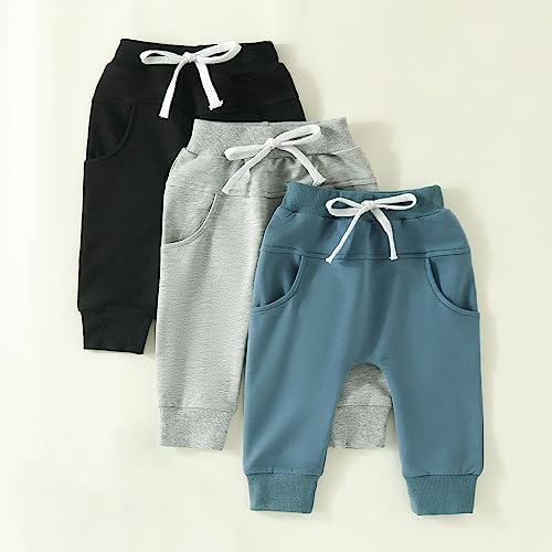 Treat your little one to these cozy and fashionable toddler sweatpants, offered in a practical 3-pack. Crafted from a blend of 65% cotton and 35% polyester, these pants are not only breathable and stretchy, but also incredibly soft and comfortable for all-day wear. Designed with a loose fit and an adjustable drawstring, these sweatpants ensure a perfect fit for your child. Suitable for a variety of occasions, from a day at the park to a cozy afternoon at home, these versatile pants can be paired with a wide range of tops, from hoodies to jackets. Plus, the solid colors make them a perfect match for any outfit. Show your little one some extra love with these must-have trousers! Package includes 3 pairs of pants.