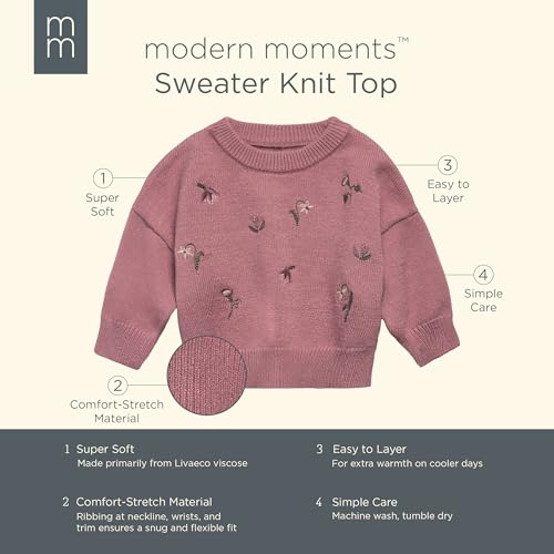 Delightfully warm and adorable, this baby knit top is made from super-soft viscose to ensure your little one’s comfort. Its comfort-stretch ribbing at the neckline, cuffs, and hem ensures a snug fit that’s easy to wear. The thick and cozy feel of the sweater is perfect for chillier days. The charming touch of a delicately embroidered rose adds a dash of whimsical charm to this darling piece.