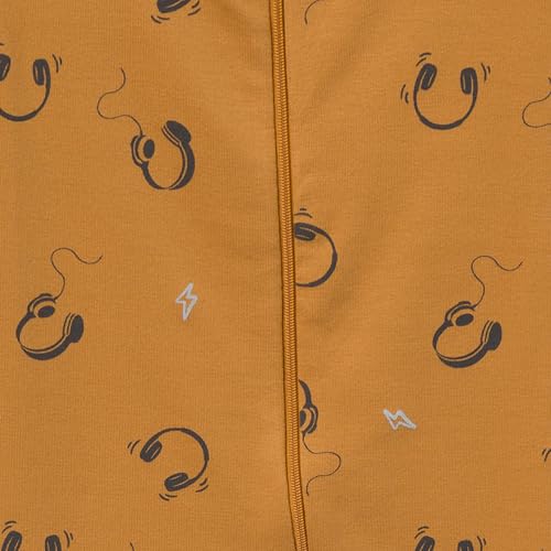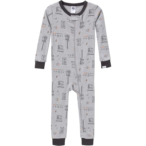 Adorn your little one in the utmost comfort with this 3-pack set of footless pajamas. Constructed primarily from soft, breathable cotton, these snug-fitting sleepwear pieces ensure a soothing, gentle touch on your baby’s skin. The two-way zipper, complete with a careful neckline guard, allows for hassle-free dressing and quick diaper changes. The spandex trim at the neckline and wrists ensures a flexible, secure fit that moves with your baby. Plus, the charming music theme, featuring headphones, drums, guitars, and electric symbols, adds a dose of fun to bedtime. Perfect for lullaby-filled nights and dreamy snoozes!