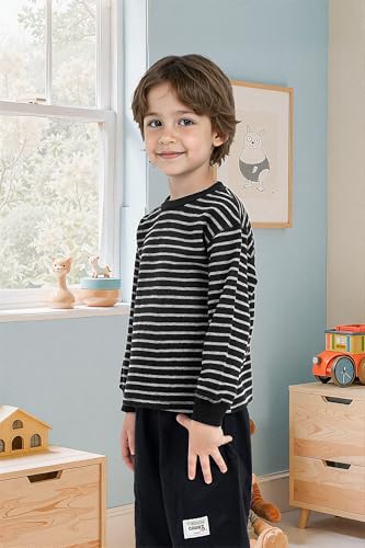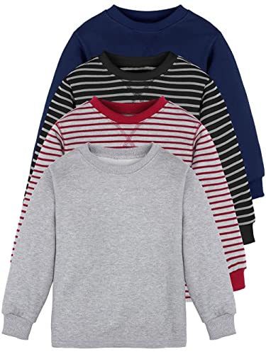 Keep your little ones warm and stylish with this pack of four boys’ thermal long-sleeve tees. These shirts are crafted with an ultra-soft, skin-friendly blend of 95% cotton and 5% spandex, ensuring optimal comfort and durability. Available in solid colors as well as black and grey, purplish red and grey stripes, these tees add a fashionable touch to any outfit. They pair perfectly with everything from jeans to cargo pants, making them a versatile addition to any wardrobe. Ideal for boys aged 4 to 12 years, these thermal shirts are an excellent choice for daily wear, travel, or cozy afternoons at home. Enjoy the comfort and practicality of these classic long-sleeve tees that keep your kids warm throughout the winter.