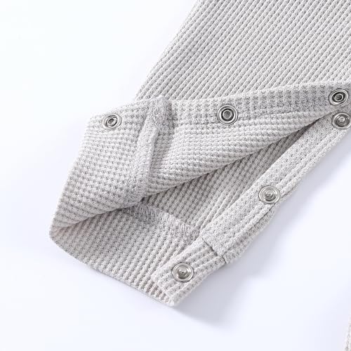 Wrap your little one in pure comfort with these adorable unisex baby rompers. Crafted from a soft and breathable cotton blend, they’re lightweight and gentle on baby’s delicate skin. The solid color waffle pattern offers a simple and clean look, perfect for any occasion. Practical features like a classic round neck with wooden buttons and snap closures make these rompers easy to put on and take off, and also simplify diaper changes. Ideal for everyday wear, sleep time, casual outings, and special events like birthdays or photo shoots. These rompers are also machine washable, offering easy clean up and long-lasting wear. The set includes 2 rompers, suitable for babies aged 0 – 12 months in any season. Please refer to the detailed size chart provided before purchase.