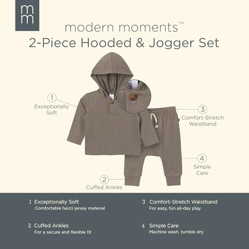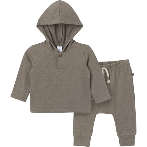 This stylish and comfortable baby outfit set includes a hooded top and matching pants, perfect for your little one’s daily adventures. Made from exceptionally soft hacci fabric, this ensemble offers a soft and stretchy feel perfect for active play. The comfort-stretch waistband ensures a snug fit that can comfortably be worn all day. The solid green heather color adds a touch of class to this charming and cozy outfit, making it an ideal addition to your baby’s wardrobe.