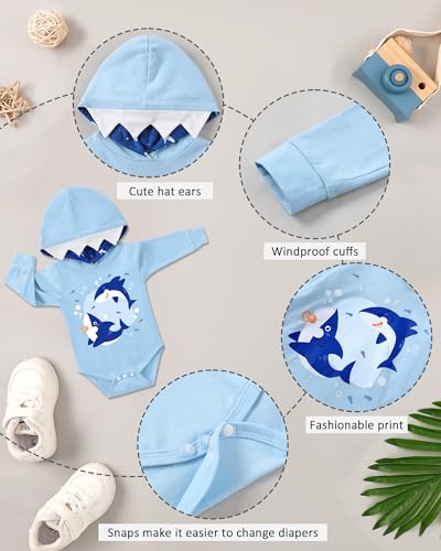 Dress your little one in this charming two-piece outfit set, perfect for keeping him warm and cozy during the colder months. Crafted from exceptionally soft, breathable material, this set is gentle on your baby’s delicate skin and ensures all-day comfort without irritation. The set features a unique animal ear romper and matching printed pants, taking the stress out of diaper changes with its easy-access snap/zip closure. From casual daily wear to family gatherings, photo shoots, and holiday presents, this set makes the ideal choice for various occasions. Gift it to your lovely sons, grandsons, nephews, or little brothers for a memorable surprise. The set includes a romper top and cute pants, suitable for newborns, babies aged 0-3 months, 3-6 months, 6-12 months, and toddlers aged 12-18 months. The outfit can be hand washed or machine washed for easy maintenance. For the best fit, please refer to the size chart provided.