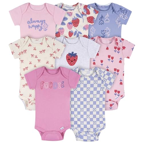 Enjoy a variety of adorable outfits for your little princess with this 8-pack of short-sleeve baby girl bodysuits. Crafted from 100% cotton, these bodysuits are gentle on sensitive skin, ensuring your baby’s comfort all day. The cleverly designed leg snaps make dressing and diaper changes a breeze, while the expandable lap-shoulder neckline allows for easy removal. Each bodysuit features cute screenprint text art and puff details, adding a charming touch to your baby’s wardrobe. Mix and match these bodysuits for a new delightful look every day!