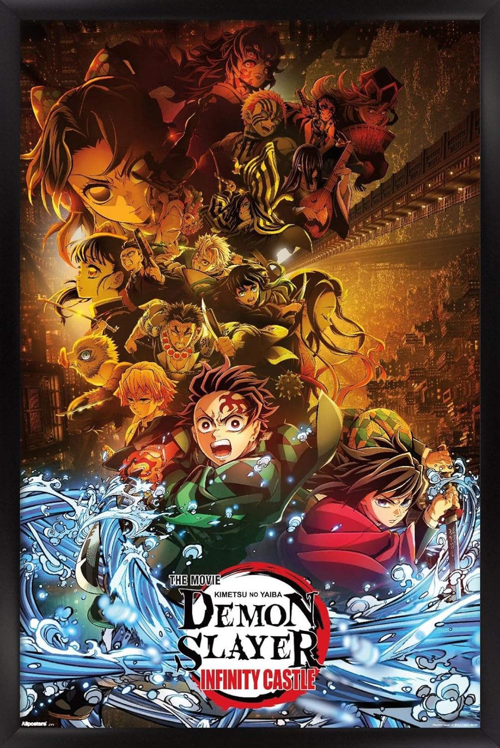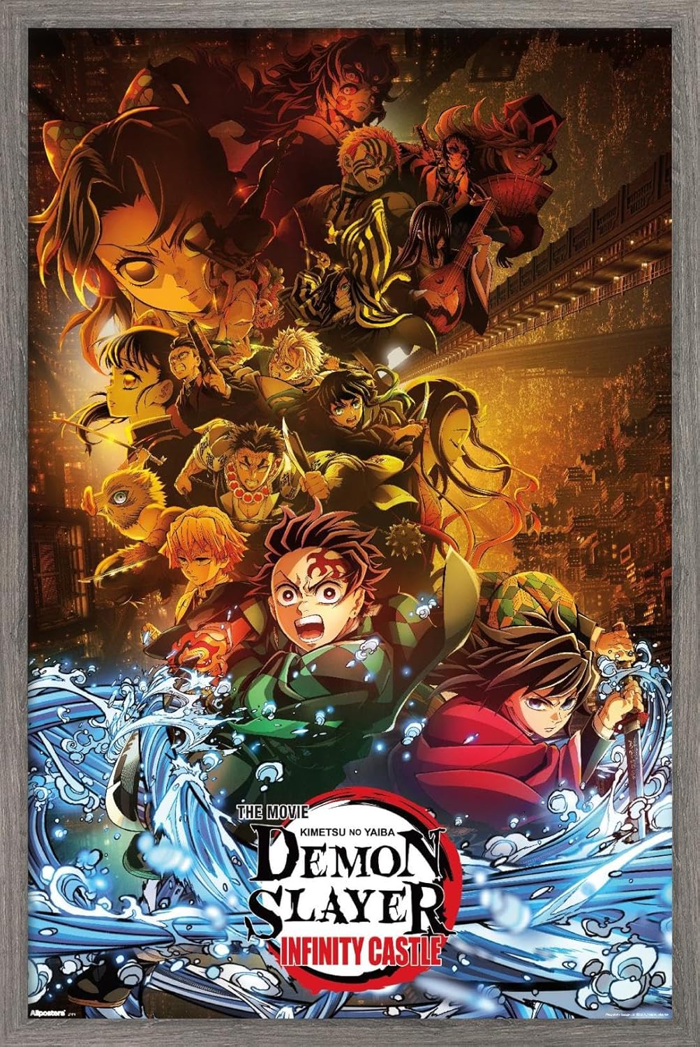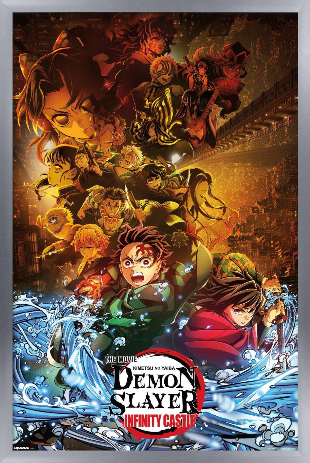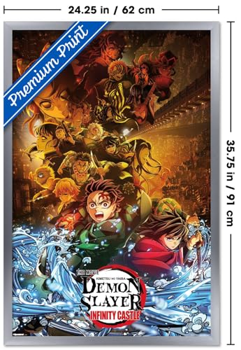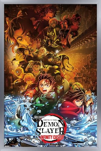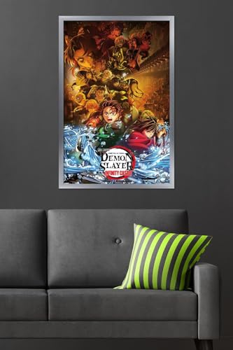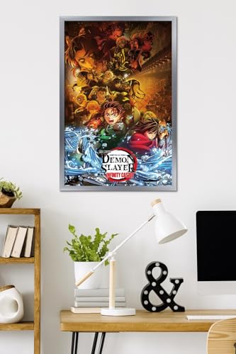 Official Demon Slayer: Infinity Castle key art poster in an elegant silver frame. Measures 34″ x 22.4″ with vibrant, high-quality printing. Ready to hang and elevate your anime room decor.