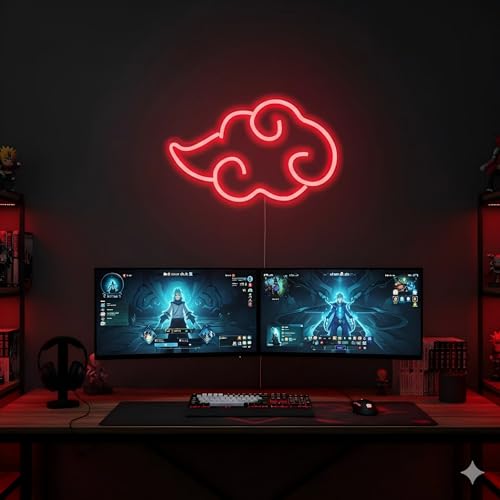 Dleouly Anime Neon Sign, LED Red Cloud Neon Signs for Wall Decor, Dimmable Gaming Neon Sign Wall Signs USB Night Neon Light for Bedroom Game Room Man Cave Party, Gifts for Your Son, Boyfriend(12x7in)