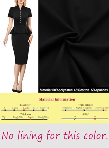 This dress boasts an appealing V Neckline, short sleeves, and decorative buttons that add a touch of elegance. The peplum detail is a stylish addition that also works to subtly hide the belly area. It features an adjustable belt and a knee-length slim fit sheath silhouette that accentuates your figure. The concealed back zipper and back slit ensure ease of wearing and walking.