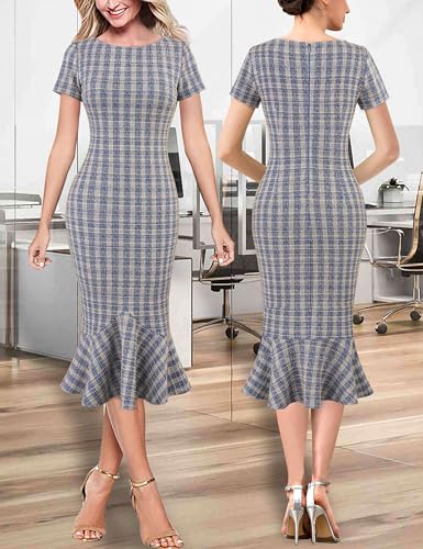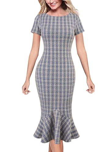 Looking for an enchanting outfit for your next special event? This elegant vintage-styled mermaid midi dress is perfect for cocktail parties, weddings, semi-formal events, work, or even job interviews. The dress features a crew neckline, short sleeves, and a hidden back zipper that adds to its sleek design. Its knee-length sheath mermaid silhouette is adorned with a ruffled hem, offering a touch of sophistication and charm. Each dress color or pattern may be made of different materials, providing a unique feel and look. The dress is available in various sizes, with a unique size chart for each variation. For an ideal fit, please refer to the size chart in the product photos and choose your size based on your body measurements. Care for this beauty is simple – hand wash gently in cold water and hang or line dry. Elevate your style game with this versatile, chic dress!