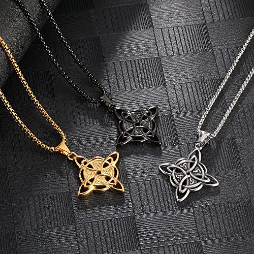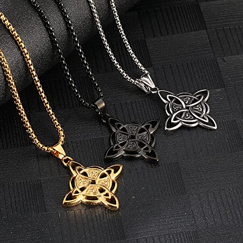 Experience the subtle mystique of Celtic culture with this intricate Witches Knot Necklace. The pendant showcases a beautiful quaternary Celtic knot, symbolizing the four cardinal points or the changing seasons, elegantly crafted to capture attention. Measuring 1.4*1.4 inches, the pendant hangs on a 23-inch chain and weighs a comfortable 20 grams. This necklace makes an excellent gift, embodying eternal values like loyalty, faith, friendship, and love. It’s the perfect accessory for a variety of occasions, from weddings to cocktail parties, and even medieval or Viking reenactments. Crafted from stainless steel, this necklace promises durability and longevity. Plus, with our round-the-clock customer service and optional Amazon gift wrap, you’re guaranteed a satisfying shopping experience.