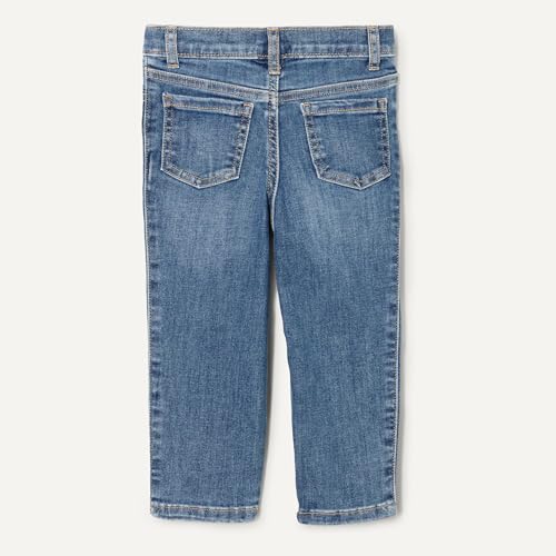 Crafted with the style-conscious little tyke in mind, these straight fit jeans offer a blend of fashion and comfort. The super soft, stretchy denim is designed to keep its shape all day, providing your little one with the ultimate in comfort. Each pair is unique, with varying colors due to wash, finish, and dye. The jeans feature a faux fly and a stretch pull-on back waist detail, complete with an interior elastic and metal shank button closure. Designed to be straight and comfortable through the hip, thigh, and leg, these jeans also offer an adjustable waist with inner elastic tabs, allowing for a customized fit tailored to your child’s needs. The perfect blend of style and practicality, these jeans are an essential addition to any little boy’s wardrobe.