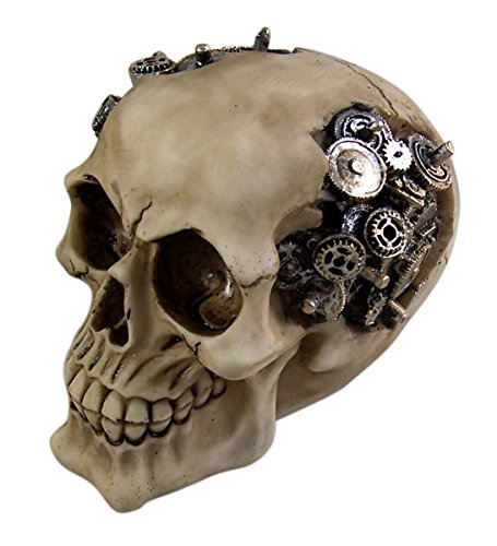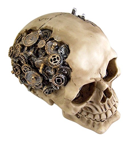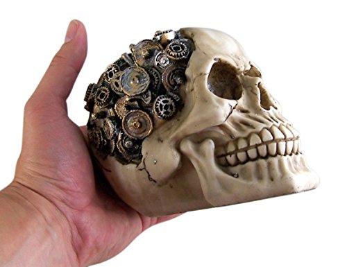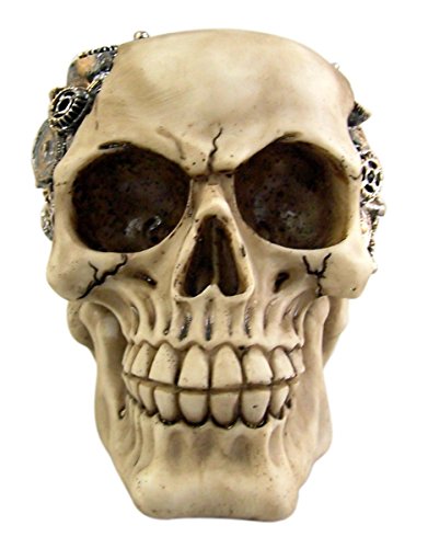 This captivating Steampunk-themed Skull Figurine is more than just a piece of decor. Intricately designed with protruding gearwork, it exudes a futuristic, cyborg-like charm. Standing at approximately 4.75 inches tall, it’s an ideal conversation piece for your living room, study, or office. Crafted from premium cold-cast polyresin, it’s hand-painted to ensure every intricate detail is highlighted. This figurine is not just a representation of artistic brilliance but also a testament to fine craftsmanship. It comes in its original packaging, making it a perfect gift for lovers of unique, steampunk-inspired decor.