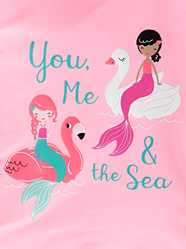 This 2-piece swimwear set is perfect for active girls, offering a rashguard top and matching bottoms for complete coverage and protection. Choose between long and short sleeve styles, catering to different weather conditions or personal preference. The set comes in a range of playful and vibrant patterns that add a splash of color and fun to her swimwear collection. More than just style, the set is designed with UPF (Ultraviolet Protection Factor) to safeguard her sensitive skin from harmful sun rays. Crafted from stretchy, breathable fabric, this set ensures easy movement and all-day comfort, whether in or out of the water. Plus, its quick-drying and durable material ensures this delightful duo withstands regular use, keeping her looking and feeling great swim after swim.