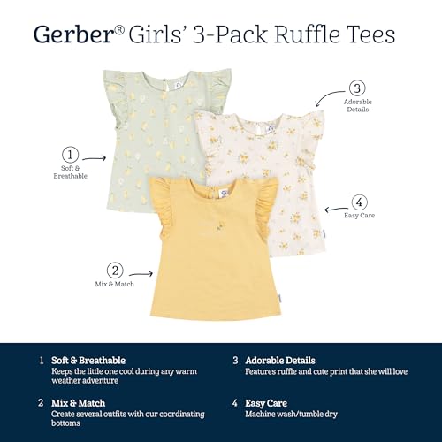 Delight your little one with this pack of three nature-inspired T-shirts. Perfect for sunny days, these short-sleeved tops are gentle on sensitive skin and offer a slight stretch for ultimate comfort and mobility. Enjoy a variety of charming colors and prints, each designed to spark her love for nature and add a pop of whimsy to her wardrobe.