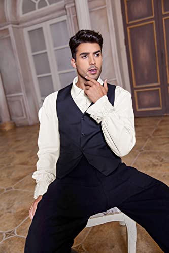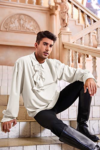 Embrace your inner adventurer with this men’s Victorian Renaissance Pirate shirt. Crafted from premium fabric, the shirt is not only comfortable and breathable, but also lightweight and chic. Its standout features include long sleeves, lace flared cuffs, and a ruffled front, all in a solid color that exudes a retro style. Perfect for a variety of occasions, this shirt can be worn for Halloween parties, Renaissance faires, costume clubs, performances, or simply for an exciting dress-up party. Please note that while we take great care to accurately represent the color of the shirt, there may be slight variations due to monitor settings and shooting angles. Enjoy the feel of a true Gothic medieval costume with this shirt that both men and women can flaunt with style!