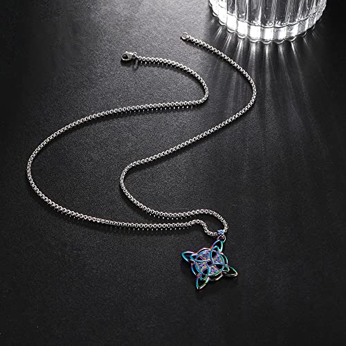 Immerse yourself in the magic of ancient symbolism with this captivating Celtic Witches Knot Necklace. The intricately designed, quaternary Celtic knot pendant serves as a beautiful representation of the four cardinal directions or the changing seasons. With a balanced 1.4*1.4 inches size, this pendant hangs elegantly on its 23-inch chain, weighing a comfortable 20g. The Celtic knot, a timeless symbol of loyalty, faith, friendship, or love, makes this necklace an ideal gift for loved ones. Perfect for various occasions like weddings, cocktail parties, or medieval reenactments, this necklace adds a touch of mystique to any outfit. Crafted from durable stainless steel, this necklace promises lasting quality. Additionally, our 24-hour online service ensures your complete satisfaction. Choose the gift wrap option at checkout to make your gift-giving even more special.