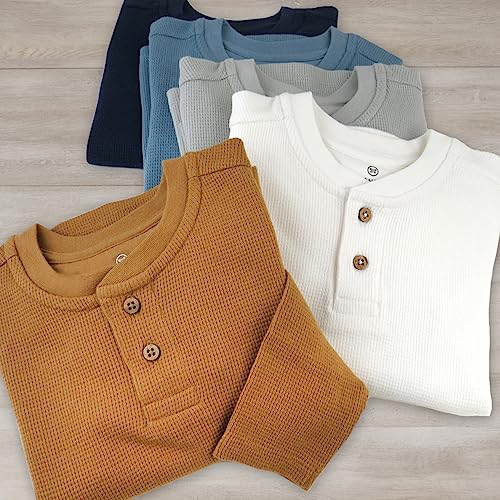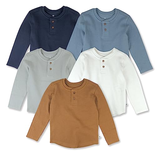 Wrap your little one in pure comfort with our 5-pack of super soft, 100% organic cotton shirts. These breathable knit fabric shirts are perfect for delicate and sensitive skin, being free of all synthetic pesticides and chemicals and certified by GOTS. The Henley style design features front buttons for easy, fuss-free dressing and changes. Crafted with comfort and safety in mind, the natural and sustainable waffle fabric maintains its great look wash after wash. Plus, they’re machine washable for your convenience. These shirts have received accolades from various parenting and household publications for being among the best organic baby products. Your baby’s comfort matters to us, and we believe it’s found in the details.