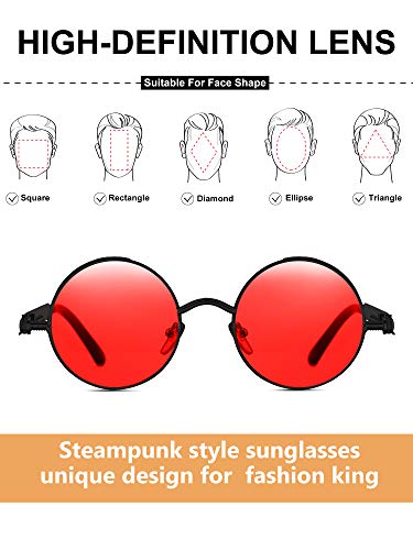 Retro Round Steampunk Sunglasses – 4 Piece Set for Men and Women