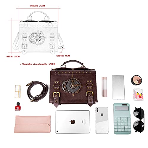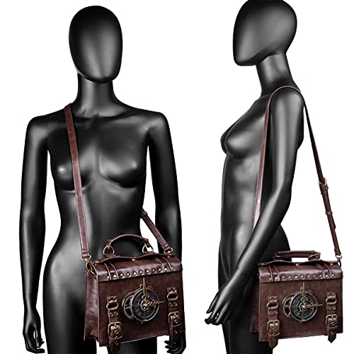 The adjustable shoulder strap provides flexible versatility, allowing you to wear it as a crossbody or shoulder bag. Plus, the soft PU leather carrying handle ensures a comfortable grip for handheld use. Please note that this item is not intended for children under 12. Flaunt your unique style and stay organized with this Retro Steampunk Leather Messenger Bag.