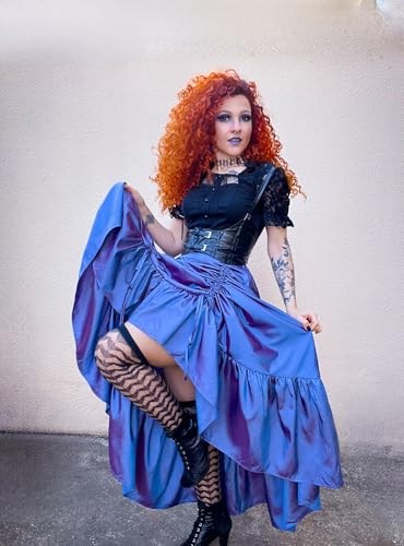 Step into a bygone era with this Victorian-inspired Gothic Steampunk skirt. Boasting a unique high-low hem, adjustable drawstrings, and an elastic back waist for a comfortable and flattering fit, this skirt is perfect for a range of occasions. Whether you’re attending a Renaissance Festival, a theatrical performance, a Steampunk party, a Halloween event, or simply injecting some flair into your everyday wear, this skirt adds a dramatic touch to any outfit. Crafted with care, it should be either hand washed in cold water or professionally dry cleaned. Please refer to our provided size chart to ensure the perfect fit. This isn’t just a costume, it’s a statement of style!