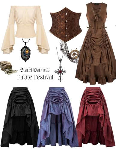 Scarlet Elegance: Women’s Gothic Steampunk Renaissance Pirate Skirt