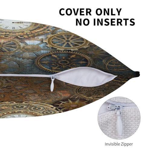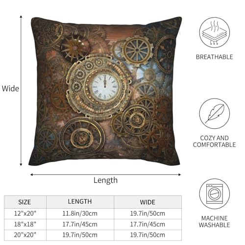 Immerse your living space in the intriguing world of steampunk with this set of 2 pillow covers, featuring a captivating design of a rusty clock and assorted gears. These 18×18 inch square covers are crafted from breathable polyester fabric, offering a soft, comfortable touch that’s a delight to rest on. Both sides of the pillow cover showcase the same distinctive design, neatly finished with an invisible zipper for a seamless look. Ideal for your sofa, bed, or favorite chair, these pillow covers add a dash of industrial charm to any room. Please note that pillow inserts are not included. For care, these pillow covers can be either hand or machine washed in cold water. To maintain the vibrancy of the print, it’s recommended to turn them inside out and use a laundry bag during washing. Avoid bleach, ironing, and tumble drying to ensure these pillow covers continue gracing your home with their unique appeal.