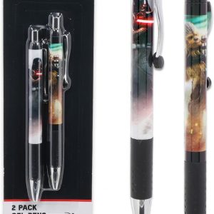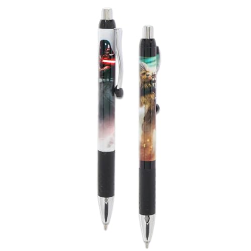 Set of 2 ballpoint pens featuring iconic Star Wars characters including Darth Vader, Han Solo, and Chewbacca. Great for school, office, or as a fan gift.