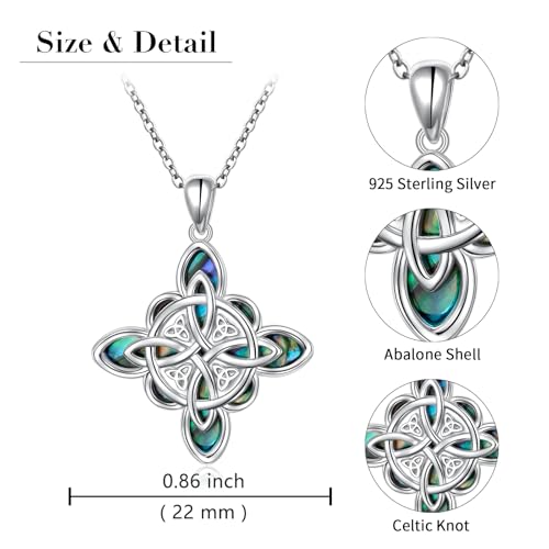 Embrace the allure of the ancient with this elegant Sterling Silver Celtic Knot pendant necklace. This stunning piece features a mesmerizing Celtic Knot design, a symbol of strength, protection, and eternity, made from iridescent natural abalone shell. Crafted from high-quality 925 sterling silver, it’s resistant to tarnish and free from nickel, lead, and cadmium. The necklace is completed with a high polish finish and a secure lobster clasp, ensuring both lasting shine and durability. With a pendant width of 0.86 inch and a chain length of 18+2 inches, this piece is a versatile addition to any jewelry collection. Ideal as a thoughtful gift for special occasions like birthdays, anniversaries, or holidays, it comes beautifully packaged in a small jewelry box, complete with a silver cleaning cloth. Wear it every day and let its beauty and symbolism enhance your style.