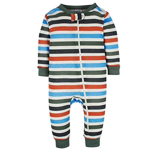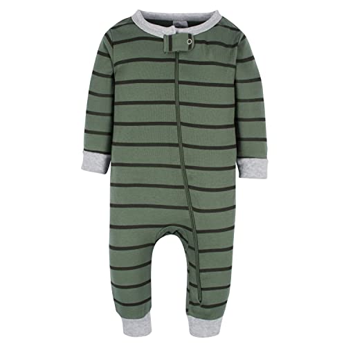 Presenting a delightful set of three one-piece, snug fit pajamas for baby boys. Crafted with your baby’s comfort in mind, these pajamas are made from soft, breathable cotton fabric that provides ultimate comfort for a good night’s sleep. The snug fit ensures safe sleeping through the entire night. The front zipper feature allows for quick and fuss-free changes, even at midnight. The icing on the cake – an adorable color scheme of ivory, green, and blue with charming stripes and cute polar bear art. Your little one will just love wearing these!