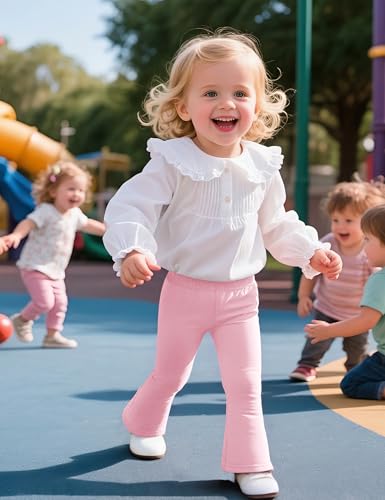 Treat your little one to these delightful toddler girls’ pants, thoughtfully crafted in a blend of 95% cotton and 5% spandex. The pack includes one pair of trendy pencil leggings and one pair of sweet bell-bottom pants. The soft, sweat-absorbent, and breathable fabric ensures all-day comfort, while the elastic waistbands make getting dressed a breeze, supporting your toddler’s independence. The pants come in a vibrant array of colors, including rose red, pink, watermelon red, black, and light gray – there’s a shade to suit every mood! These versatile sets can be mixed and matched with oversized sweatshirts or cute tops for a variety of stylish looks. Perfect for daily wear, school, sports, walks, or cheerleading, these pants can be worn alone in the spring and fall, or as cozy leggings in the winter.