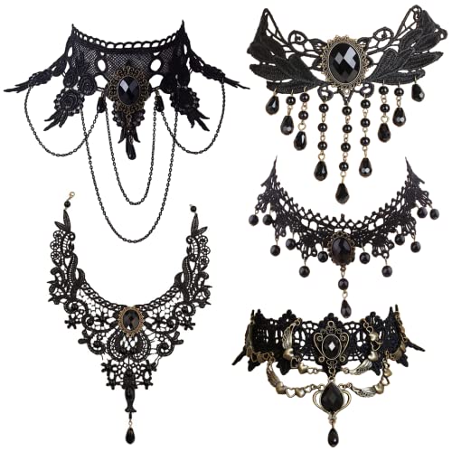 Victorian Gothic 5-Piece Lace Choker Set for Elegant Women