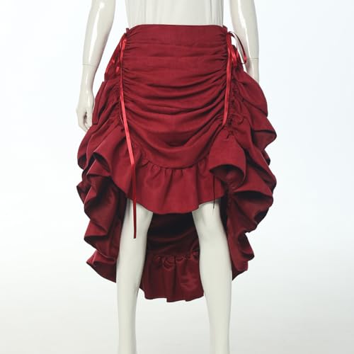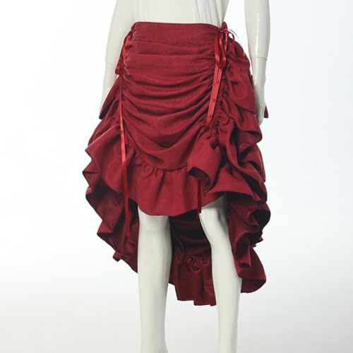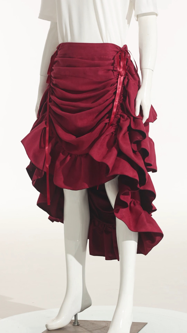 This Victorian Steampunk skirt adds a touch of vintage-inspired elegance to any outfit. It’s unique, with a high-low design featuring multiple layers of ruffles for a feminine, playful feel. The skirt’s length is adjustable, allowing you to customize your look and achieve the perfect fit. It’s constructed with a comfortable elastic waistband, ensuring a snug, cozy fit. Whether you’re dressing up for a Renaissance Faire, a steampunk event, or a burlesque costume party, this skirt is sure to turn heads. Its gothic, steam punk-inspired design makes it a versatile piece that can also be incorporated into a cyberpunk or pirate outfit. Please consider ordering a size down if you are petite. Embrace your unique style with this captivating skirt!