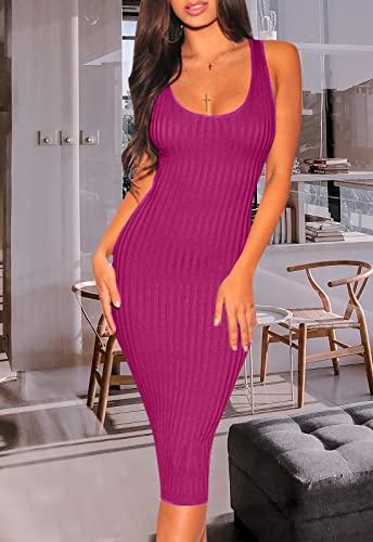 This Bodycon Midi Tank Dress is your ticket to an elegant yet comfortable look. Perfectly tailored to highlight your figure, this knee-length dress is made from a ribbed knit material that stretches to accommodate your curves. The sleeveless design and scoop neck add a touch of sensuality, making it an ideal choice for date nights, parties, or simply a casual day out.